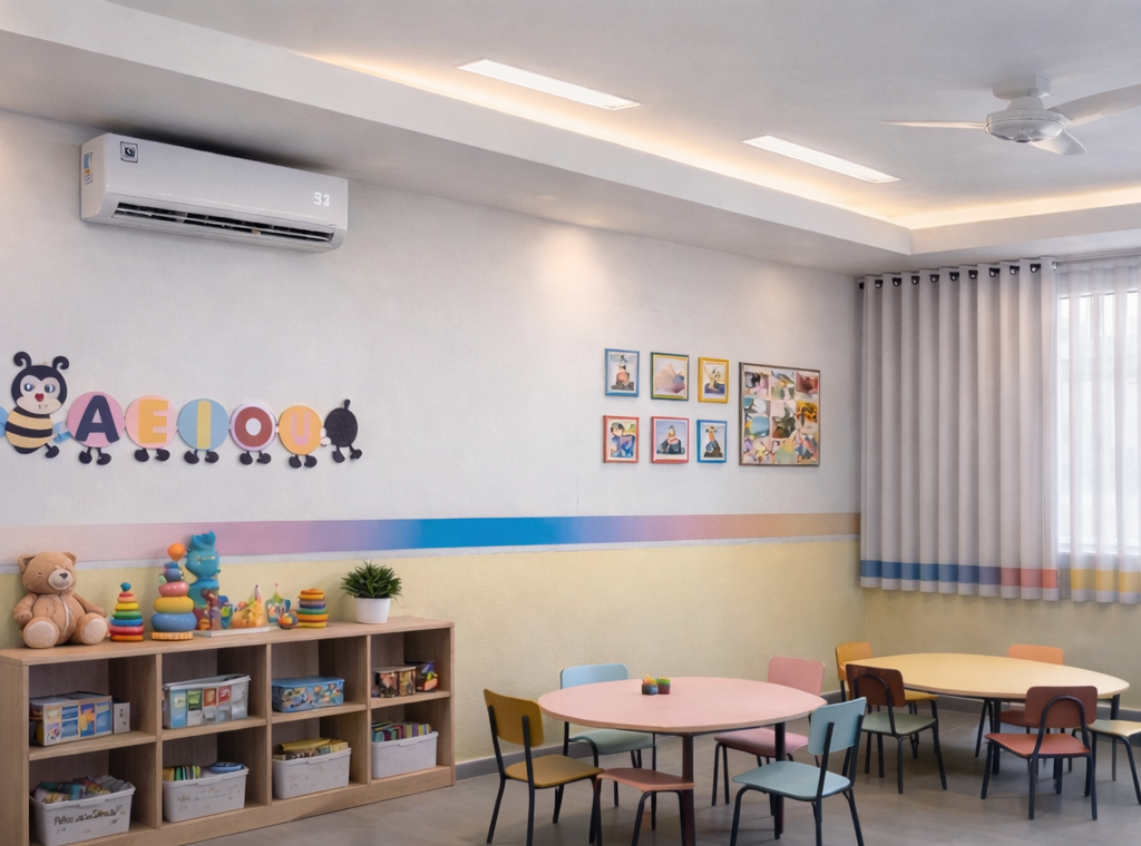 A EMEI Madalena Cazzotti Donega agora conta com todas as salas de aula equipadas com ar-condicionado novo, garantindo mais conforto térmico e bem-estar para nossas crianças no dia a dia escolar.